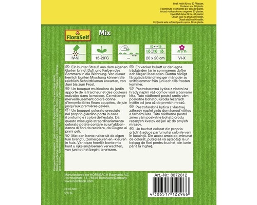 | Enthaltene Blühpflanzen | Insgesamt 33 Produkte, zum Beispiel: Bischofskraut (Ammi majus), Mandelröschen (Clarkia unguiculata), Kokardenblume (Gaillardia pulchella), Strandflieder (Limonium sinuatum), Garten-resede (Reseda odorata), Seifenkraut (Saponaria calabric) |