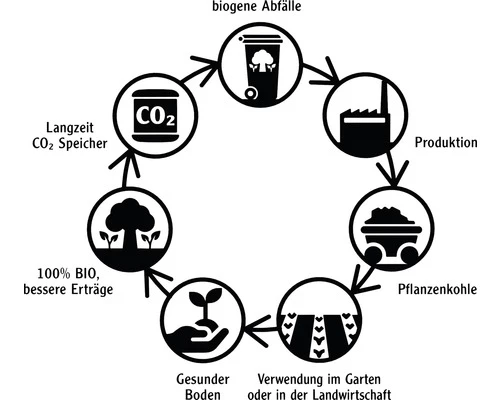 Pflanzenkohle ist traditionell ein Hilfsstoff zur Bodenverbesserung. Pflanzenkohle ist von sehr hoher Porosität, was die hocheffektive Speicherung von Mineralien, Wasser, Mikroorganismen und Schadstoffen ermöglicht. Darüber hinaus ist der Boden eine ausgezeichnete Kohlenstoffsenke. Sie unterstützt zudem den Humusaufbau in den Böden.