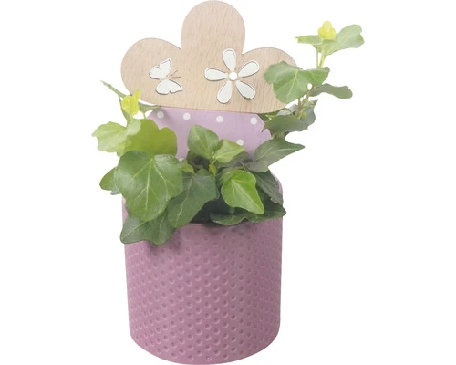 Darum solltest Du zugreifen: Du bist nun mal der kreative Typ und machst entsprechende Geschenke – freilich auch Dir selbst. Dafür eignet sich dieses Pflanzen-Arrangement ausgezeichnet. Schon allein die Keramik zeigt Wirkung. Sie muss allerdings mit der Efeu konkurrieren. Gemeinsam sind sie jedoch unschlagbar und werden nicht nur im Wohnbereich zum floralen Blickfänger. Das Arrngement ist zudem mit einem Blumenstecker dekoriert. So entsteht ein traditionell-stilvolles Erscheinungsbild, welches Vorfreude auf die Frühlingsszeit weckt. Auch in Geschäftsräumen verbreiten sie eine gewisse Atmosphäre.