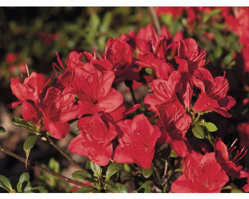 Die Sorte ‚Fridoline‘ hat leuchtend reinrote Blütenmit mit kleiner dunkelroter Zeichnung im Innern und ist reichblühend. Die Pflanze erreicht eine Wuchshöhe von ca. 60 cm. Sie ist zur Kübel- und Einzelpflanzung vorgesehen. Japanische Azalee sind relativ einfach zu pflegen und verzeihen auch Anfängern so manchen Fehler. Suchen Sie einen Standort im Halbschatten aus um die Pflanze auszupflanzen. Außerdem sollten Sie wissen, dass der Rhododendron sich auf durchlässigen, sauren Humos-Böden am wohlsten fühlt. Deshalb kann man die Pflanze auch immer einpflanzen – vorausgesetzt, der Boden ist nicht gefroren. Die Japanische Azalee ist halb-immergrün und wirft einen Teil ihrer Laubblätter im Winter ab.