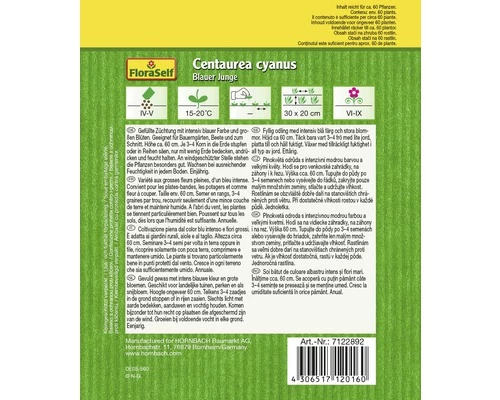 Diese einjährige Züchtung mit intensiv blauer Farbe und großen, gefüllten Blüten eignet sich für Bauerngärten, Beete und mit ca. 60 cm Höhe zum Schnitt. Säen Sie je Saatstelle 3 bis 4 Körner in die Erde oder säen Sie in Reihen. Bedecken Sie die Samen mit nur mit wenig Erde, drücken Sie sie an und halten Sie sie feucht. An windgeschützter Stelle stehen die Pflanzen besonders gut und wachsen bei ausreichender Feuchtigkeit in jedem Boden.