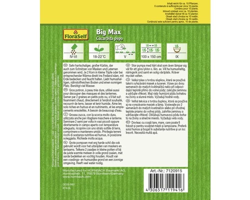 Diese Sorte ist ein sehr hartschaliger, großer Kürbis, der auch zum Schnitzen von Masken und Laternen genommen wird. Säen Sie je 2 Körner in kleine Töpfe oder bei entsprechender Wärme direkt ins Freiland, bedecken sie mit Erde und halten sie feucht. Kürbis liebt einen humushaltigen, nährstoffreichen Boden, einen sonnigen Platz und viel Wasser.
