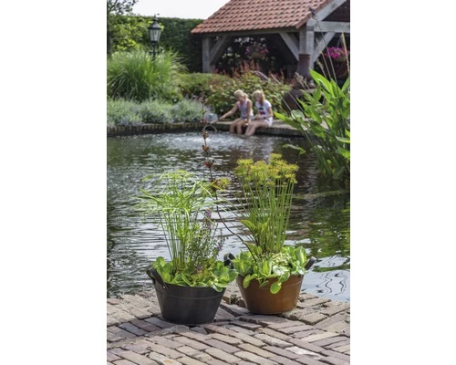 | Botanischer Name | Miniteich mit Pflanzen Ø 40 cm Zink-Schale grau |