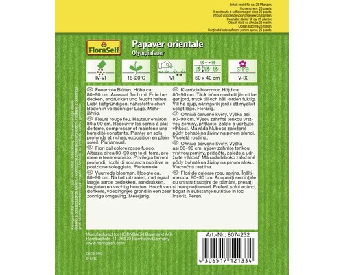| Botanischer Name | Papaver orientale 'Olympiafeuer' |
