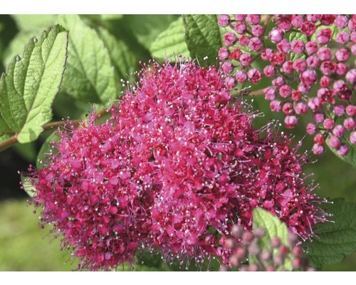 Dieser Spierstrauch wächst eher aufrecht und blüht im Sommer mit unzähligen pinkfarbenen Blüten. Im Frühjahr hat das Laub eine rötliche Farbe, bevor es im Sommer mit einem satten grün einen Kontrast zu den Blüten bildet.