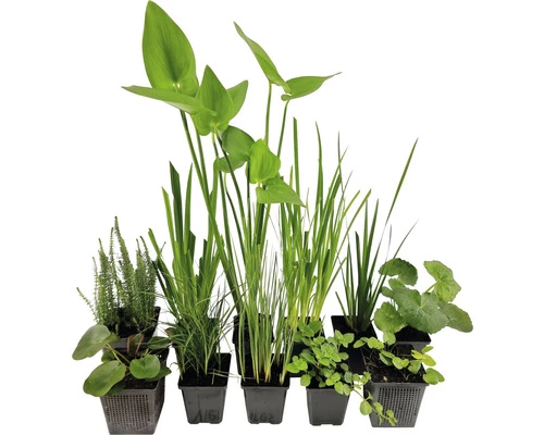 | Hinweis | Dieses Set besteht aus 11 Pflanzen: 1 x Herzblättriges Hechtkraut Topf 9 cm, 1 x Wasserminze Topf 9 cm, 1 x Wasserschwertlillie Topf 9 cm, 1 x Kalmus Topf 9 cm, 1 x Sumpfdotterblume Topf 9 cm, 1 x Sumpfgladiole Topf 9 cm, 1 x Wollgras Topf 9 cm, 1 x Rohrkolben Topf 9 cm, 1 x Gemeiner Tannenwedel Topf 11 cm, 1 x Seekanne Topf 11 cm, 1 x Zwergseerose (rot) Topf 11 cm. |