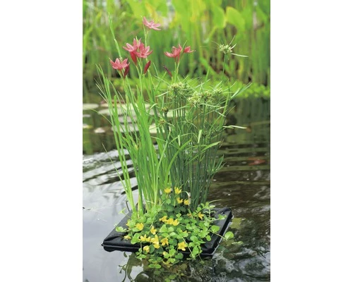 | Hinweis | Das abgebildete Produkt kann vom gelieferten Produkt abweichen. Bei den mitgelieferten Pflanzen handelt es sich um sortierte Artikel. Teil der Lieferung sind zum Beispiel: Juncus effusus 'Spiralis', Lobelia cardinalis, Mazus reptans. Während der Saison werden verschiedenen Pflanzenmischungen, aufgrund der jeweiligen Bedingungen, entsprechend fachkundig ausgewählt. |