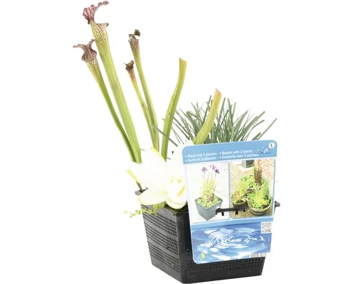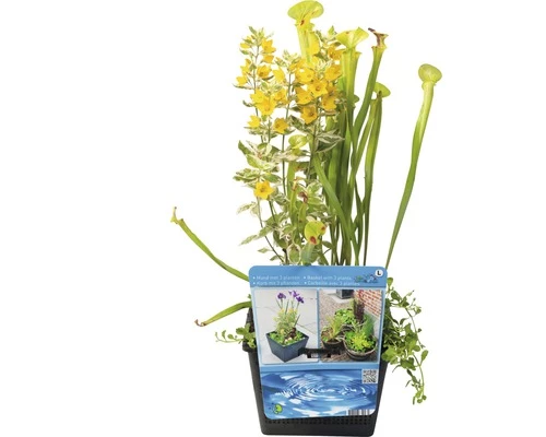 | Hinweis | Das abgebildete Produkt kann vom gelieferten Produkt abweichen. Bei den mitgelieferten Pflanzen handelt es sich um sortierte Artikel. Teil der Lieferung sind zum Beispiel: Juncus effusus 'Spiralis', Lobelia cardinalis, Mazus reptans. Während der Saison werden verschiedenen Pflanzenmischungen, aufgrund der jeweiligen Bedingungen, entsprechend fachkundig ausgewählt. |