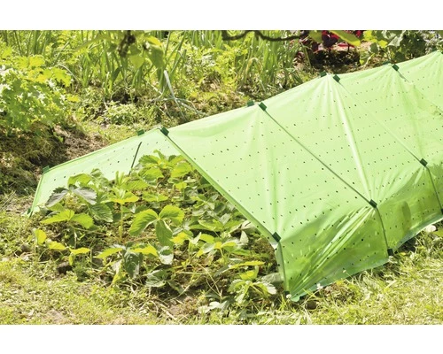 Diese Tunnelfolie von FloraSelf schützt Pflanzen vor Frost. Sie ist schnell aufgebaut und überall einsetzbar. Die Lochungen gewährleisten Luftzirkulationen, wobei eine zusätzliche Entlüftung jederzeit möglich ist. Regen kann eindringen. Die Tunnelfolie fördert durch seine Wärmespeicherung das Wachstum und weist Kälte ab. Die Folie ist passend zu den Profibügeln.