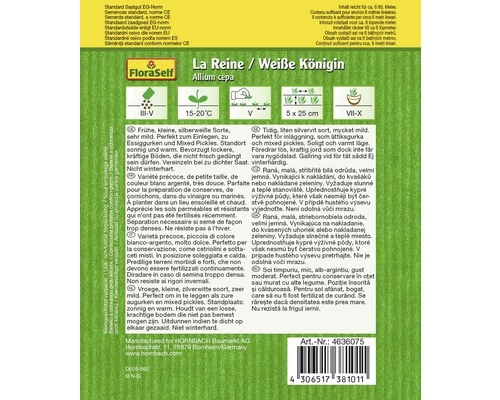 | Artikelvorteil | Sehr frühe, kleine, silberweiße Sorte, die gerne zum Einlegen, zu Essiggurken und Mixed Pickles genommen wird. |